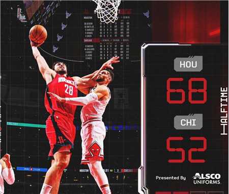 第一节,火箭没有拉开分差。公牛队擅长三分球投射,紧咬住比分,首节追到26-27!