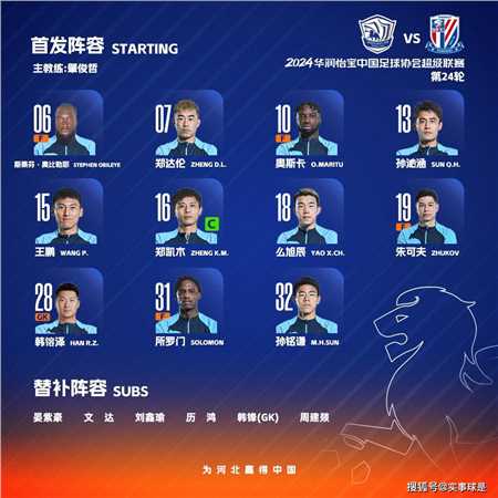 7月22日晚,在2024赛季中超联赛提前进行的第24轮最后一场比赛中,沧州雄狮将坐镇主场沧州体育场,迎战上海申花。赛前,两队首发名单公布。