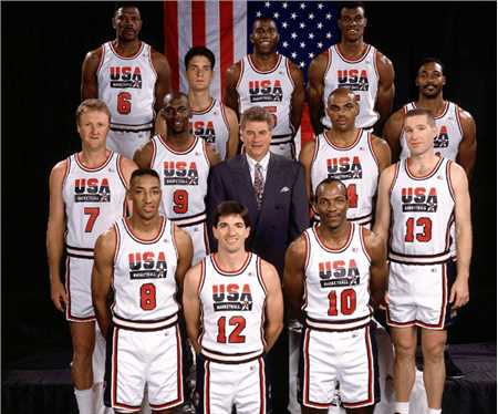 球员:迈克尔·乔丹、魔术师约翰逊、拉里·伯德、斯科特·皮蓬、查尔斯·巴克利、大卫·罗宾逊、帕特里克·尤因、卡尔·马龙、约翰、斯托克顿、克里斯·穆林、克莱德·德雷克斯勒、克里斯蒂安·莱特纳(ncaa最有价值球员)