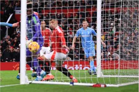 仅仅几分钟后,奥纳纳再次犯错。这一次,克里斯·伍德在小禁区内力压约罗头球攻门,曼联后防线乱成一锅粥,德里赫特、奥纳纳和利马几乎站在门线上,但谁也未能完成解围或扑救。奥纳纳甚至没有来得及尝试用手去扑救,球击中了他的左侧门柱,从而将比分改写成1-3。在丢球之后,阿根廷后卫利马反应激烈,他因为无法将球解围出界而对球网进行了泄愤。