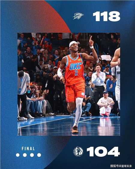西部焦点战,雷霆主场118-104击败独行侠。
