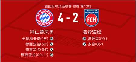 北京时间12月7日拜仁慕尼黑vs海登海姆,基米希得到全场最高的8.9分,莱奥-斯恩萨得到全场最低的5.6分