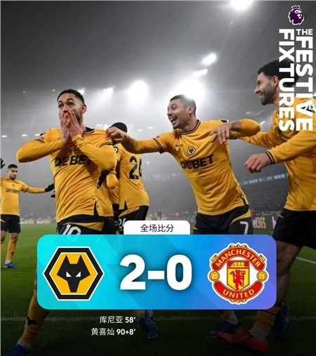 少打一人的曼联又丢定位球,库尼亚角球直接破门打破僵局,奥纳纳似乎被狼队球员包夹无法动弹,但裁判判罚有效。补时加纳乔失误被断,库尼亚长途奔袭送助攻,黄喜灿推空门杀死比赛。