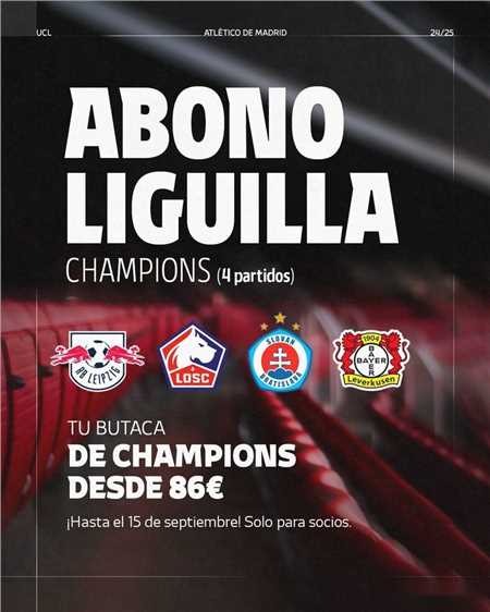 马竞将向会员独家出售1000张欧冠第一阶段主场联票,价格上分为86欧、128欧两个档次,比赛共4场。