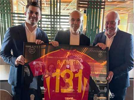 在西班牙足球传奇伊涅斯塔宣布退役后,西班牙足协向他赠送了国家队131场纪念球衣。